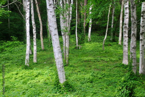 Obraz premium 白樺林・黒森展望台(秋田県・仙北市)