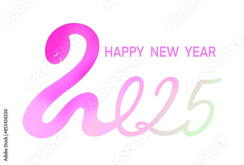 Obraz premium 2025年 ピンクのヘビのイラストのおしゃれな年賀状 巳年
