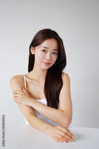 Obraz premium 自然光で撮影をした若い女性の美容イメージ