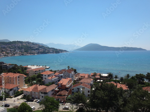 © keleny, Fototapeta premium Морской залив с сине-голубой водой и побережье с горами