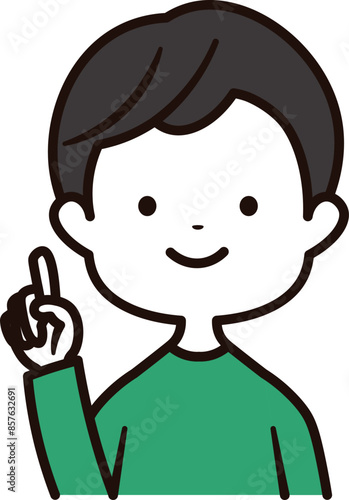 © ノモケン, Obraz premium 右手で指差ししている笑顔の男の子の上半身のアイコンイラスト素材