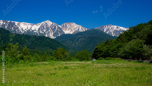© RATM, Obraz premium 新緑と残雪の北アルプス 白馬三山