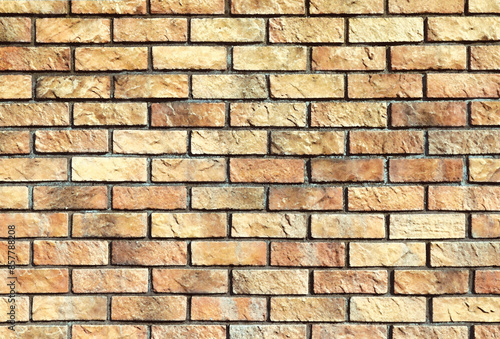 © SAIGLOBALNT, Obraz premium 明るく乾燥した質感の黄茶色系レンガ壁テクスチャー(水彩イラスト風加工および色彩加工を施した画像)