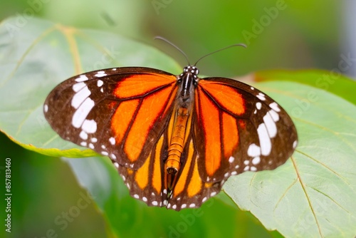 Obraz premium 葉の上で休むスジグロカバマダラ (伊丹市昆虫館)