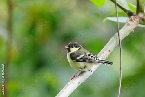 Obraz premium 枝に止まるシジュウカラの幼鳥