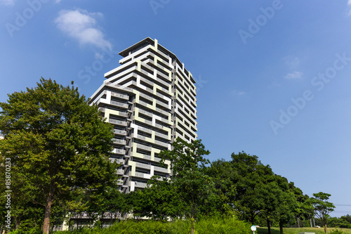 © Yoshinori Okada, Fototapeta premium 外壁がユニークな幕張ベイタウンのマンション