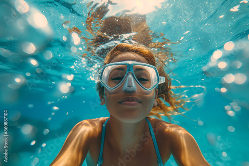 © CrioStudio, Fototapeta premium 水に潜る女性