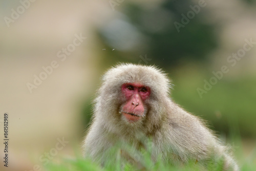 Naklejka premium 長野県の地獄谷温泉近くで見られる人懐っこい、好奇心旺盛な野生のニホンザル