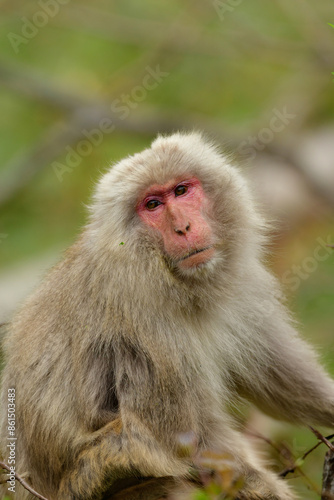 Naklejka premium 長野県の地獄谷温泉近くで見られる人懐っこい、好奇心旺盛な野生のニホンザル
