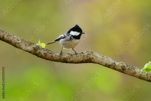 Naklejka premium 八ヶ岳や上高地の亜高山帯の針葉樹の森で見られる愛嬌あるかわいらしい小鳥ヒガラ
