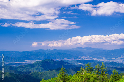 © kikisora, Fototapeta premium 初夏の美ヶ原高原から見下ろす上田市街地