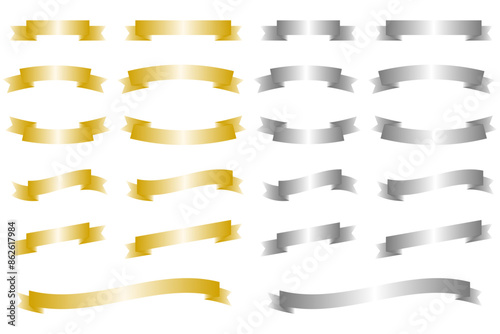 Obraz premium ゴールドとシルバーのリボンのイラストセット