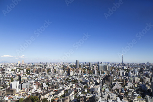 Obraz premium 東京都市風景 水道橋から望む東京スカイツリー 上野 浅草方面と東京都心の街並