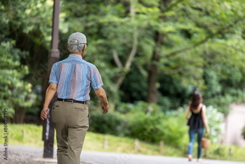 © paru, Fototapeta premium 公園をウォーキングする高齢者男性