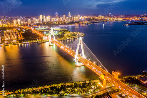 Fototapeta premium 中国海南省海口市世纪大桥城市天际线