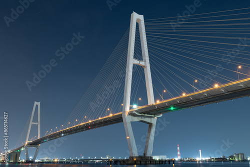 © rai, Fototapeta premium 名古屋港に架かる橋を夜に撮影