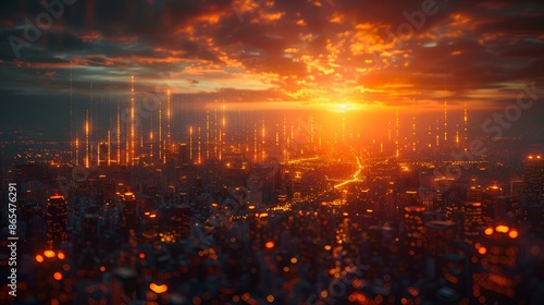 © てんぷら, Obraz premium 街の背景のグラフチャート