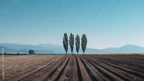 © bephoto, Obraz premium 三本の木と青空の静かな風景