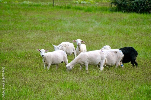 © firstocean, Obraz premium 【北海道】牧場の刈りたてのヒツジ(美深)