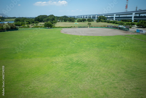 © NStock, Obraz premium 開けた芝生の公園、草野球の会場