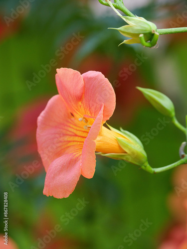 © Takamori Miyagishi , Fototapeta premium 夏から秋にかけて赤色の大きな美しい花が咲くノウゼンカズラ