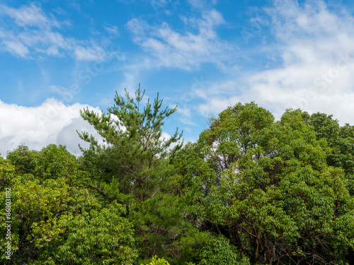 © しょこまろん, Obraz premium 青空と鮮やかな新緑の木々