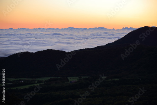 Fototapeta premium 夜明けの朝に広がる広大は雲海