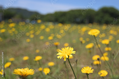 © Masaru Masuda, Fototapeta premium 青空に向かって咲くタンポポ