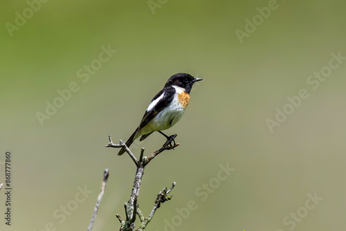 Naklejka premium 夏の高原のノビタキ雄