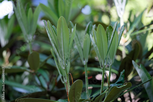 Obraz premium 力強く伸びるシヤクナゲの若葉