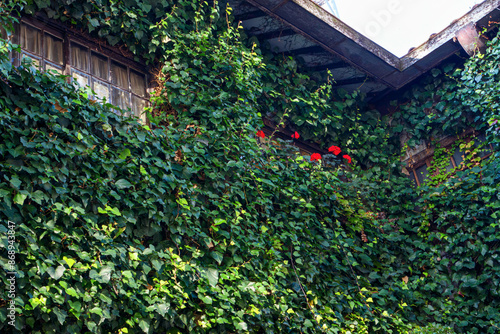 Obraz premium 町中で見かけたツタに覆われた美しいお屋敷。 内部は洋食レストランである。美しい長野の中核都市、松本市を歩く。 日本国長野県松本市 - 2021年11月7日。