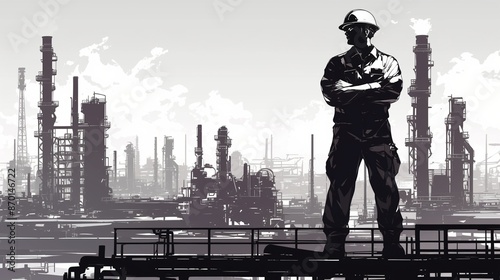 © 雅, Obraz premium 工場にいる男性作業員のシルエット12