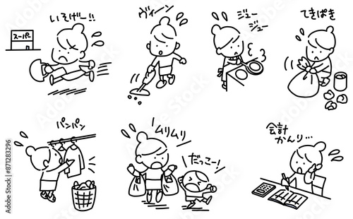 © 真知子 甲斐, Fototapeta premium 様々な家事を頑張る女性のセットイラスト