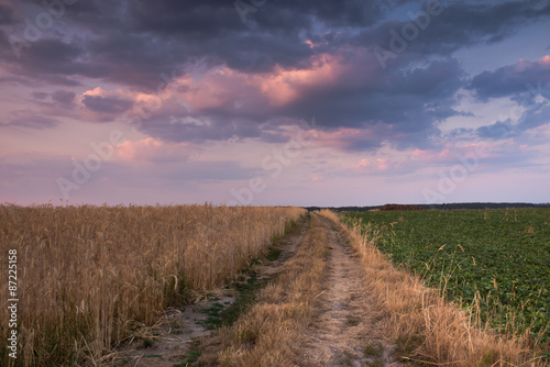 © ais60, Fototapeta premium Дорога в поле в лучах заката