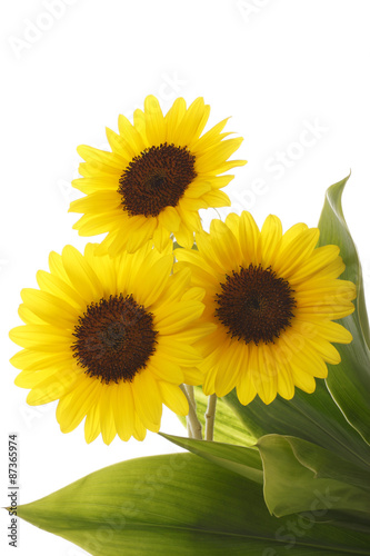 Obraz premium ヒマワリ/ヒマワリと緑の葉っぱ