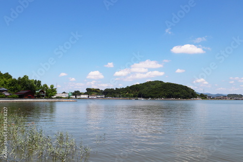 Obraz premium 吉井川河口付近 亀石神社