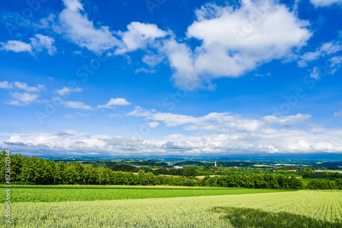 Obraz premium 日本北海道上川郡美瑛町の丘の風景