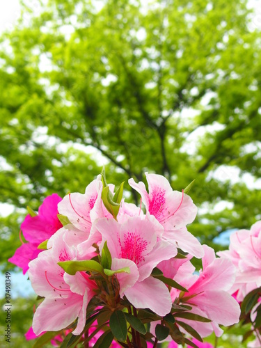 Obraz premium 新緑の欅とツツジ