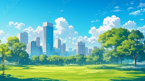 © 雅, Fototapeta premium 都会にある公園、イラスト風11