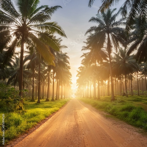 © 하연 채, Obraz premium 아름다운 야자수 숲길