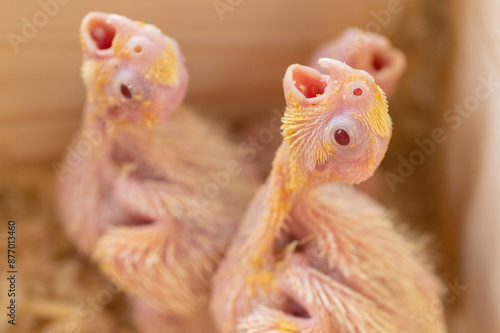 © Kinapi, Naklejka premium 餌をねだるオカメインコの雛