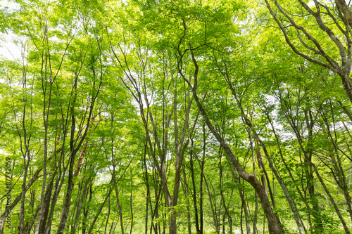 © moonrise, Obraz premium 新緑の渓流と森