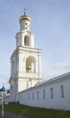 © sikaraha, Obraz premium Колокольня Свято-Юрьева монастыря осенним вечером