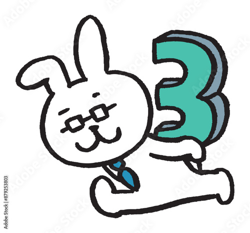© Tossan, Fototapeta premium 数学を教えるメガネをかけた先生風のうさぎのキャラ素材