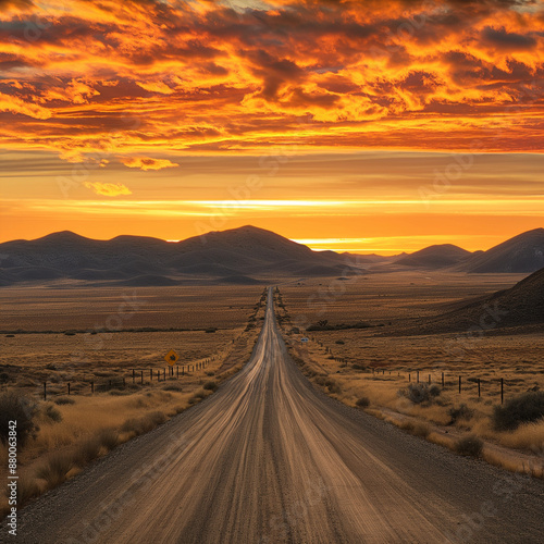 © Mirecat, Fototapeta premium 夕焼けの砂漠とハイウェイ