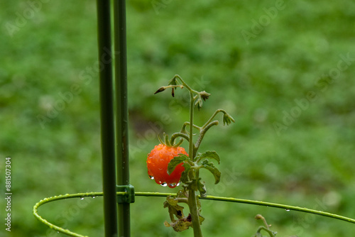 © FURISHO, Obraz premium 雨の雫が滴る家庭菜園のミニトマト