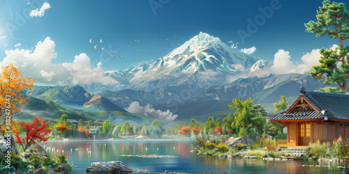 © Vertigo Images, Naklejka premium 森と野原と山のある風景