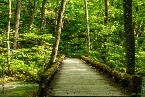 © 幹雄 渕木, Obraz premium 木漏れ日と木道