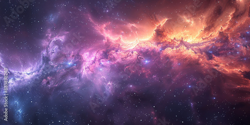 © Vertigo Images, Fototapeta premium 宇宙に輝く星々と紫の光の背景