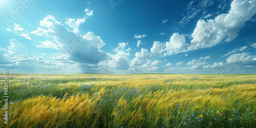 © Vertigo Images, Obraz premium 抽象的な野原と青空に舞う雲